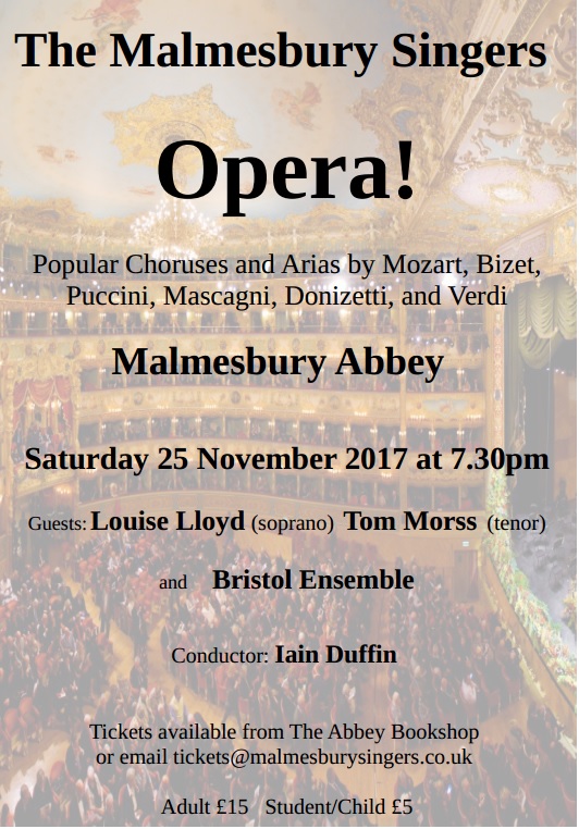 A wonderful experience to return to Malmesbury Abbey with Malmesbury singers and Bristol ensemble on Saturday 25th November 2017 for their Opera Gala. We peformed favourites from ‘Carmen’, ‘The Marriage of Figaro’, ‘La Traviata’, ‘La Boheme’ ‘E’lisir D’amore’ and more.